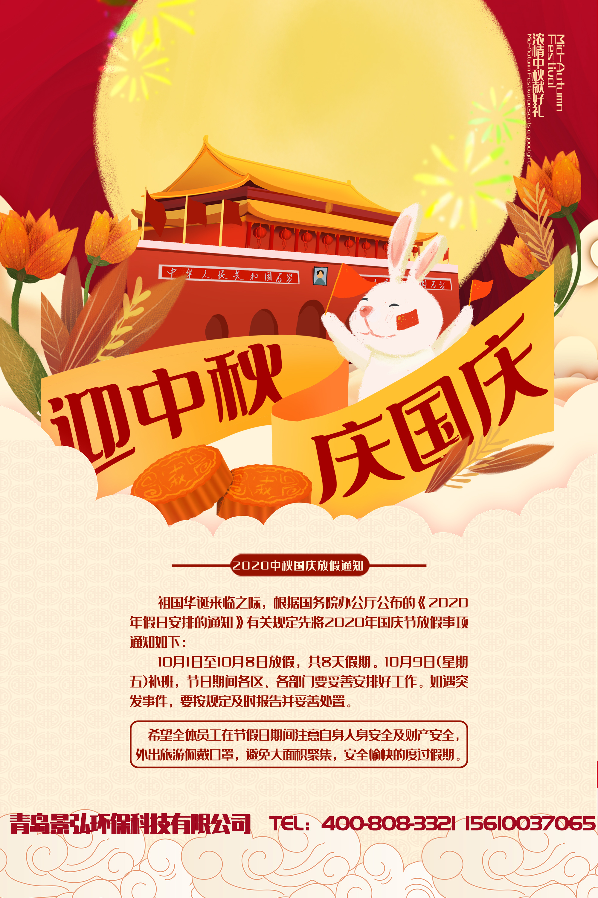 景弘環保2020年中秋國慶放假通知