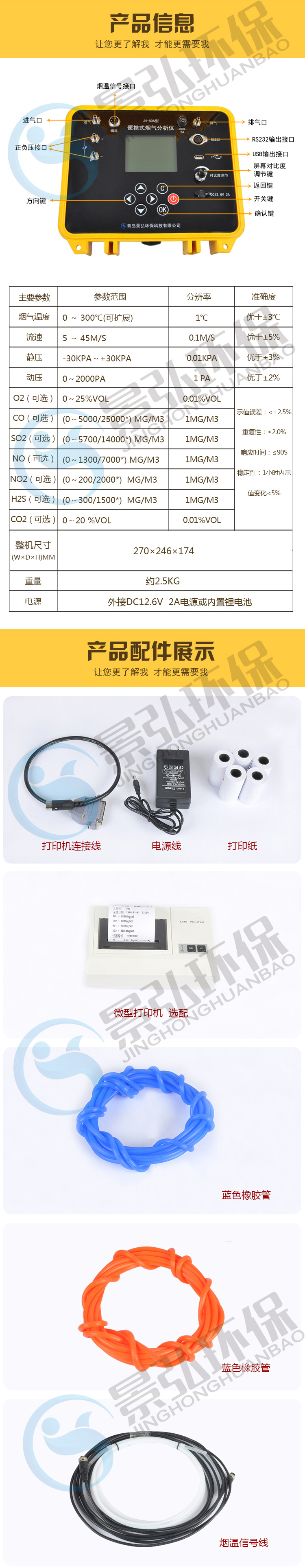5. 可以測量煙氣中O2、CO、CO2、SO2、NO2、NO、H2S等氣體的體積濃度;其他可咨詢定制,如