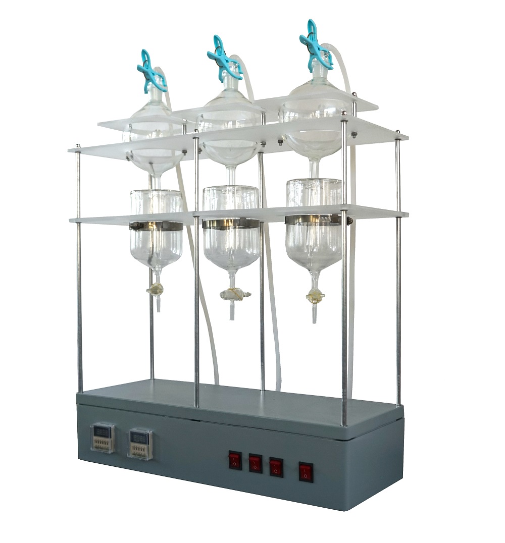 該萃取器廣泛用于地表水、地下水、自來水、工業廢水、生活污水的液液萃取工作,如水體中的石油類、揮發酚、陰離子表面活性劑等物質的萃取。雙表控制,能實現吹、吸時間的自由設置,及萃取時長的自由設置。單聯、雙聯、三聯、四聯款可供選擇。