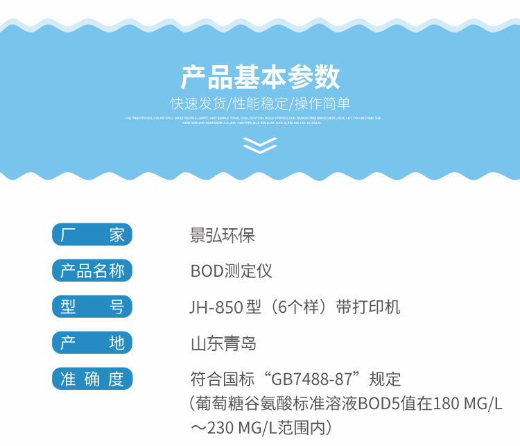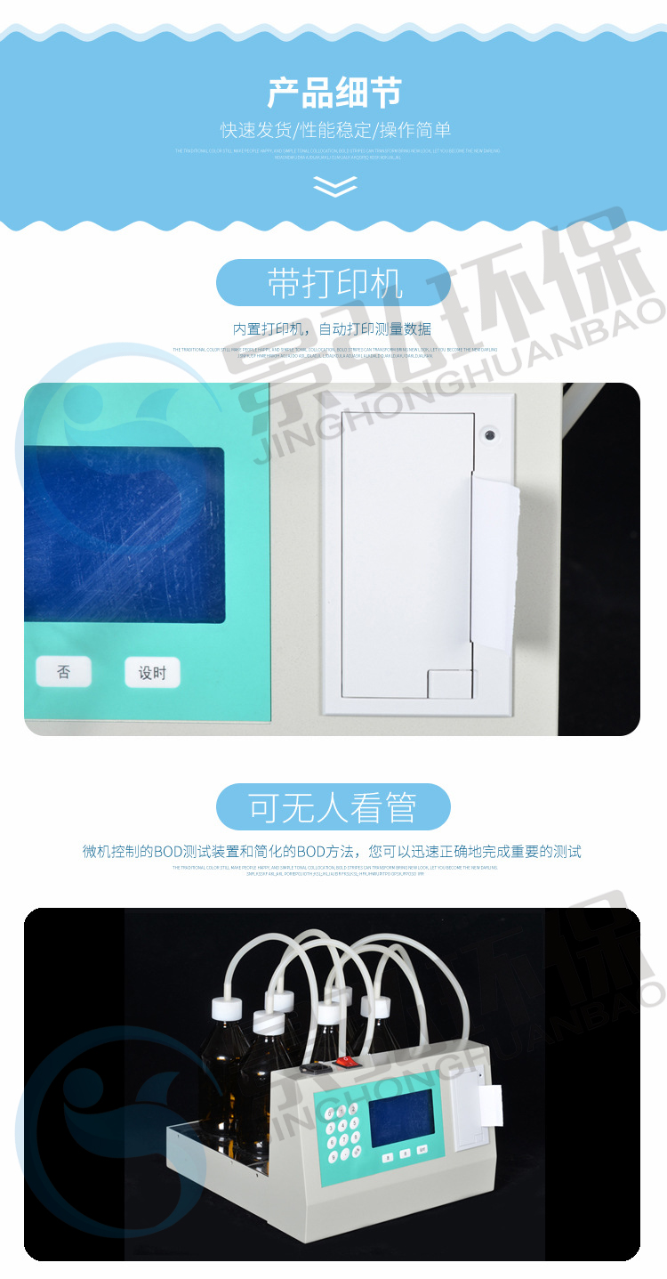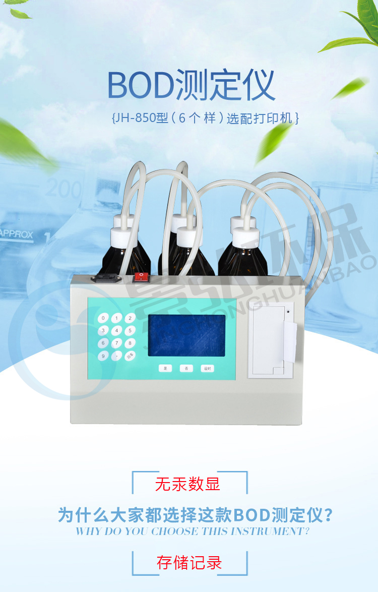 JH-850微電腦數(shù)顯式BOD測定儀是利用空氣壓差法進(jìn)行生化需氧量測定的一種儀器,能提供與化學(xué)稀釋法可比的測定結(jié)果,具有讀數(shù)直觀,生化反應(yīng)曲線一目了然和使用維護(hù)方便等特點(diǎn),可應(yīng)用于環(huán)保監(jiān)測、石油化工、醫(yī)療衛(wèi)生、教學(xué)科研等部門對水質(zhì)的監(jiān)測。