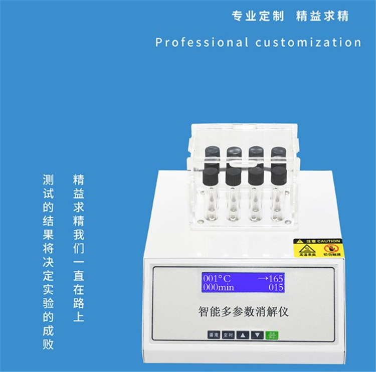 JH-YX系列COD快速消解儀是一種快速測定化學耗氧量的加熱裝置。可進行COD、總磷、總氮等樣品消解預處理。該儀器可以自動完成恒溫計時時間,時間設定1-999分鐘,溫度恒定時間到達后儀器具有自動聲報警功能,自動關機,無需人工參與。溫度漂移小,恒溫精度高。它采用PID溫控器,時間控制器、升溫速度較快,溫度緩沖小、溫度恒定均勻等特點,操作簡便,是一種實驗手段儀器化產品。同現行的重鉻酸鉀法測定化學需氧量的回流裝置相比,具有體積小、節水、節電、恒溫性能好等優點。適用于加熱快速測定化學耗氧量COD,所得數據與經典方法對應,可廣泛用于環保、高等院校、醫藥、衛生、食品、自來水、化工、污水處理、造紙、石化、冶金、印染等行業,使COD的示值測量高效、快速、經濟。
