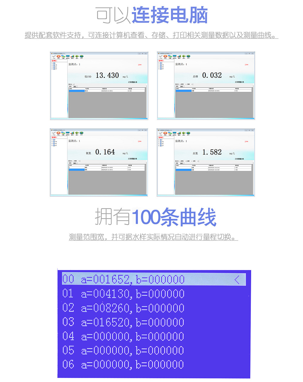 2.測量范圍寬,并可據(jù)水樣實際情況進行量程切換。