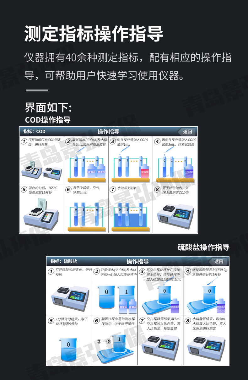 ② 測定范圍:0.01mg/L~30mg/L(>5 mg/L時分段測定,超量程可稀釋測量);