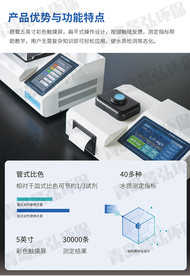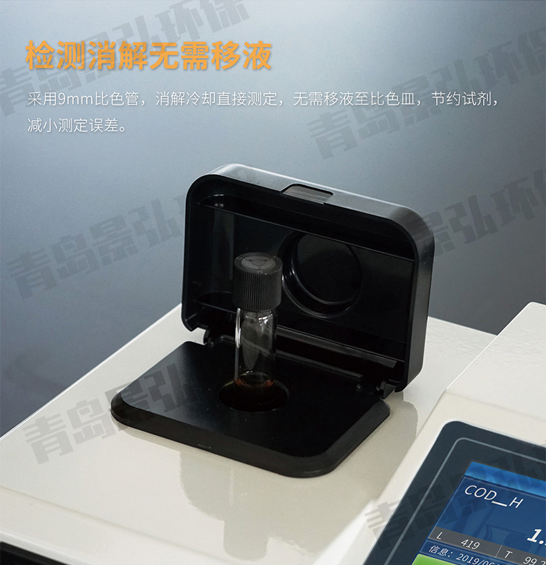 6、采用消解比色一體管,使水樣測定過程簡單、快速、安全,測量結果準確。