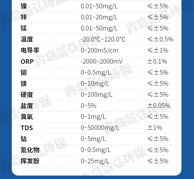 ② 測定范圍:0.01~50mg/L (超量程可稀釋測量);