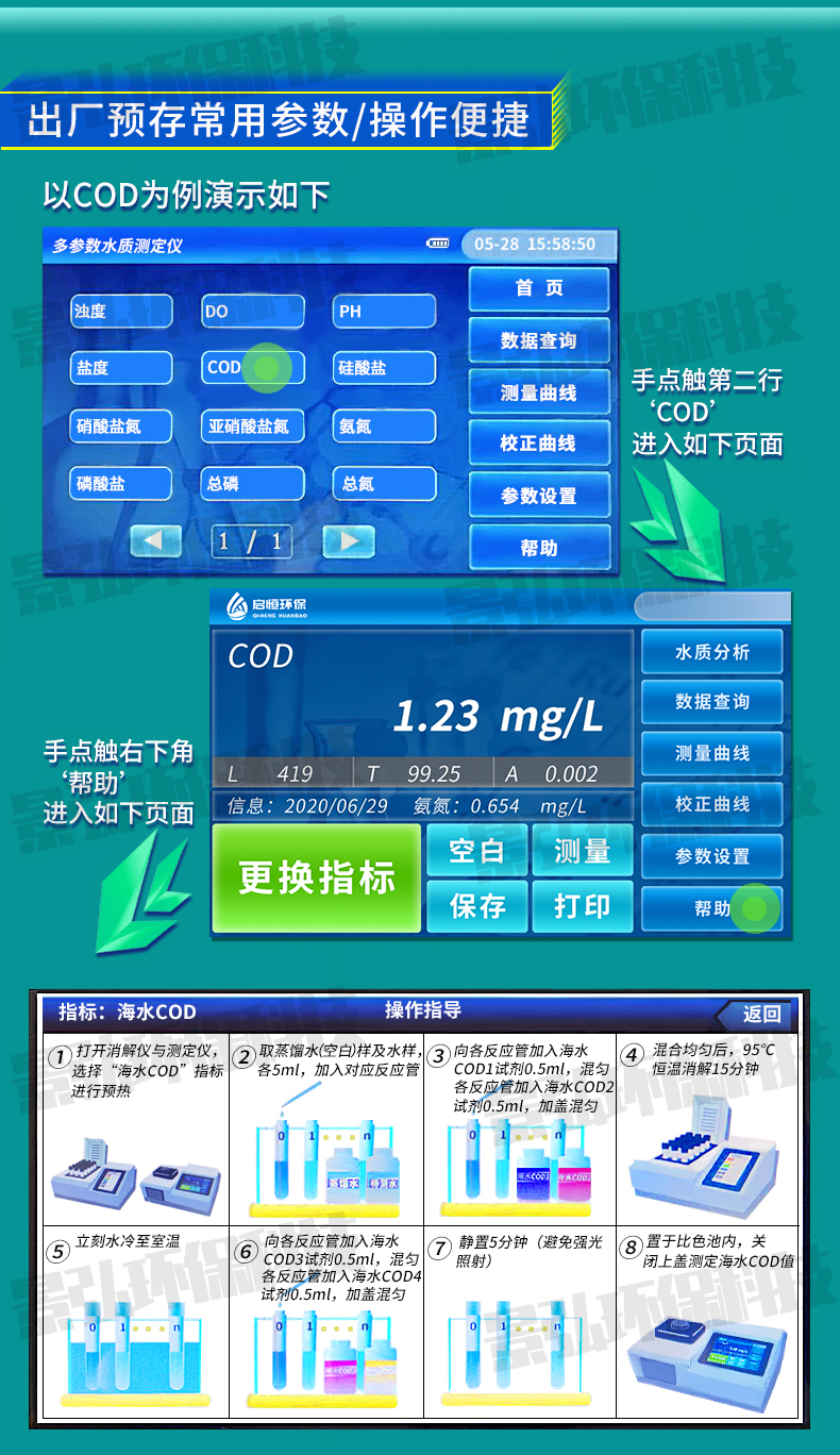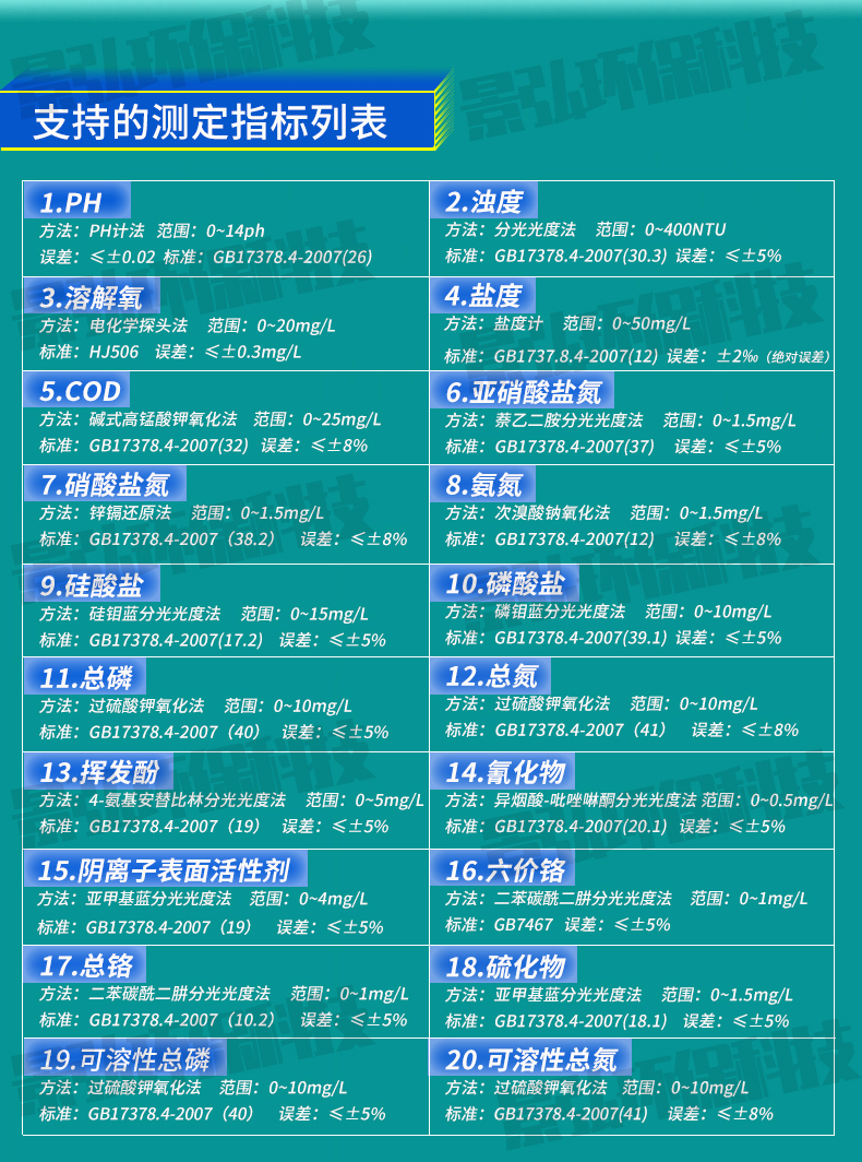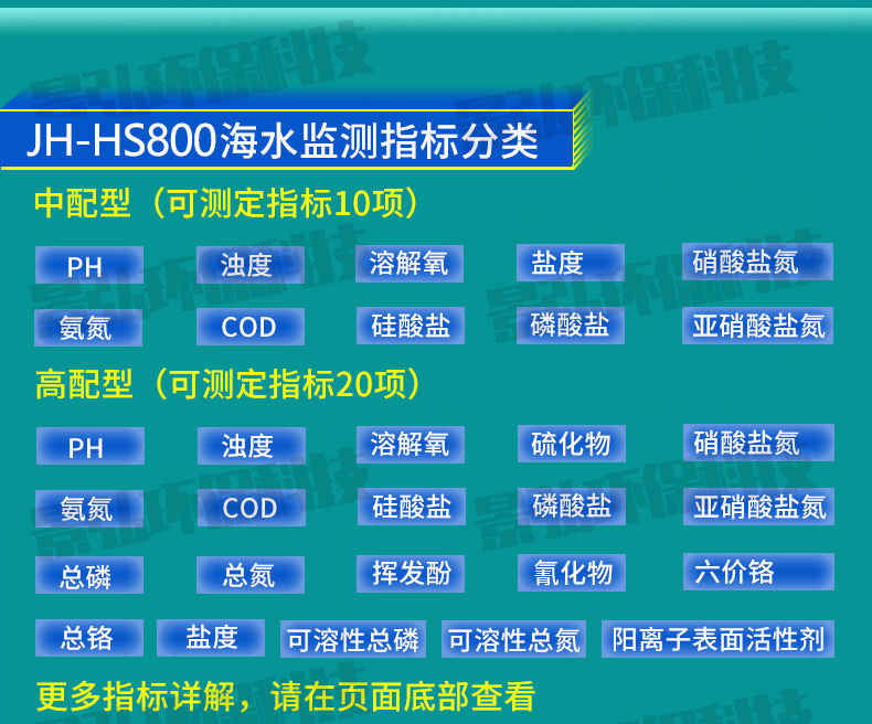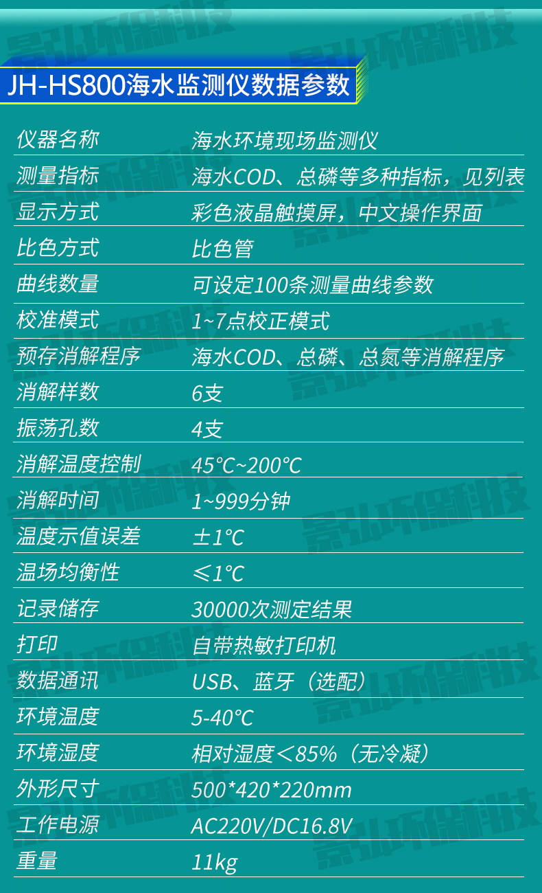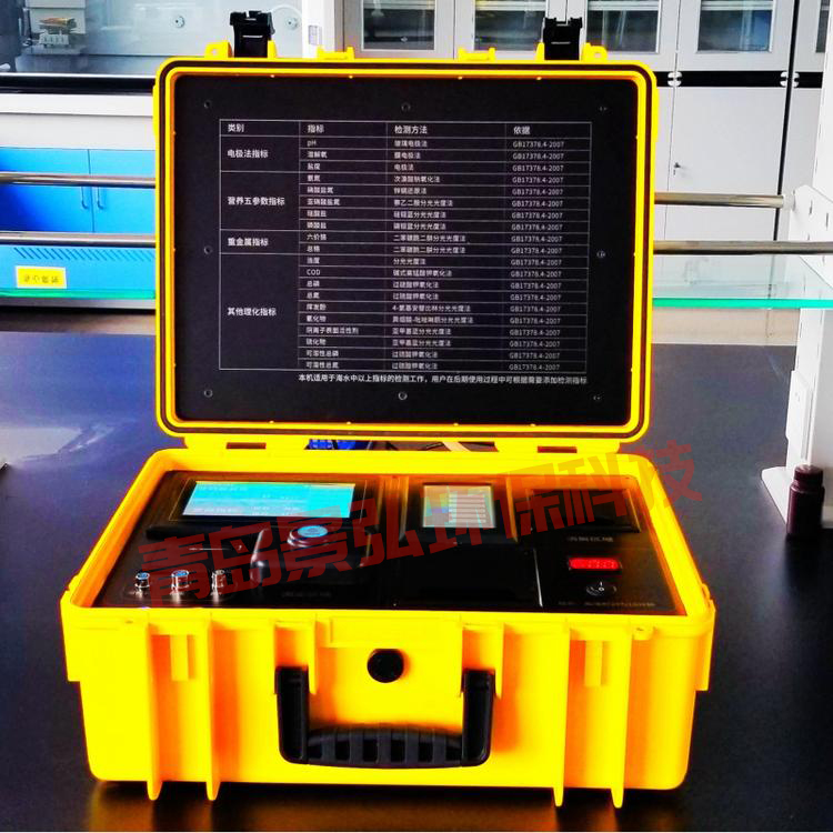 JH-HS800 型海水環境現場監測儀(旗艦版):【PH、濁度、溶解氧、鹽度、COD、氨氮、硝酸鹽氮、亞硝酸鹽氮、硅酸鹽、磷酸鹽、總磷、總氮、揮發酚、氰化物、陰離子表面活性劑、六價鉻、總鉻、硫化物、可溶性總磷、可溶性總氮】